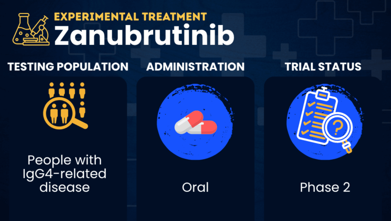 Zanubrutinib is an oral therapy that is being evaluated as a possible treatment for people with immunoglobulin G4-related disease (IgG4-RD).